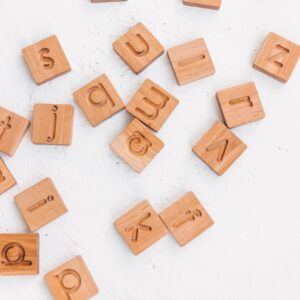- 1 rinkinį natūralaus medžio raidžių (26 vnt),
