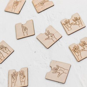- 1 rinkinį natūralaus medžio raidžių (26 vnt),