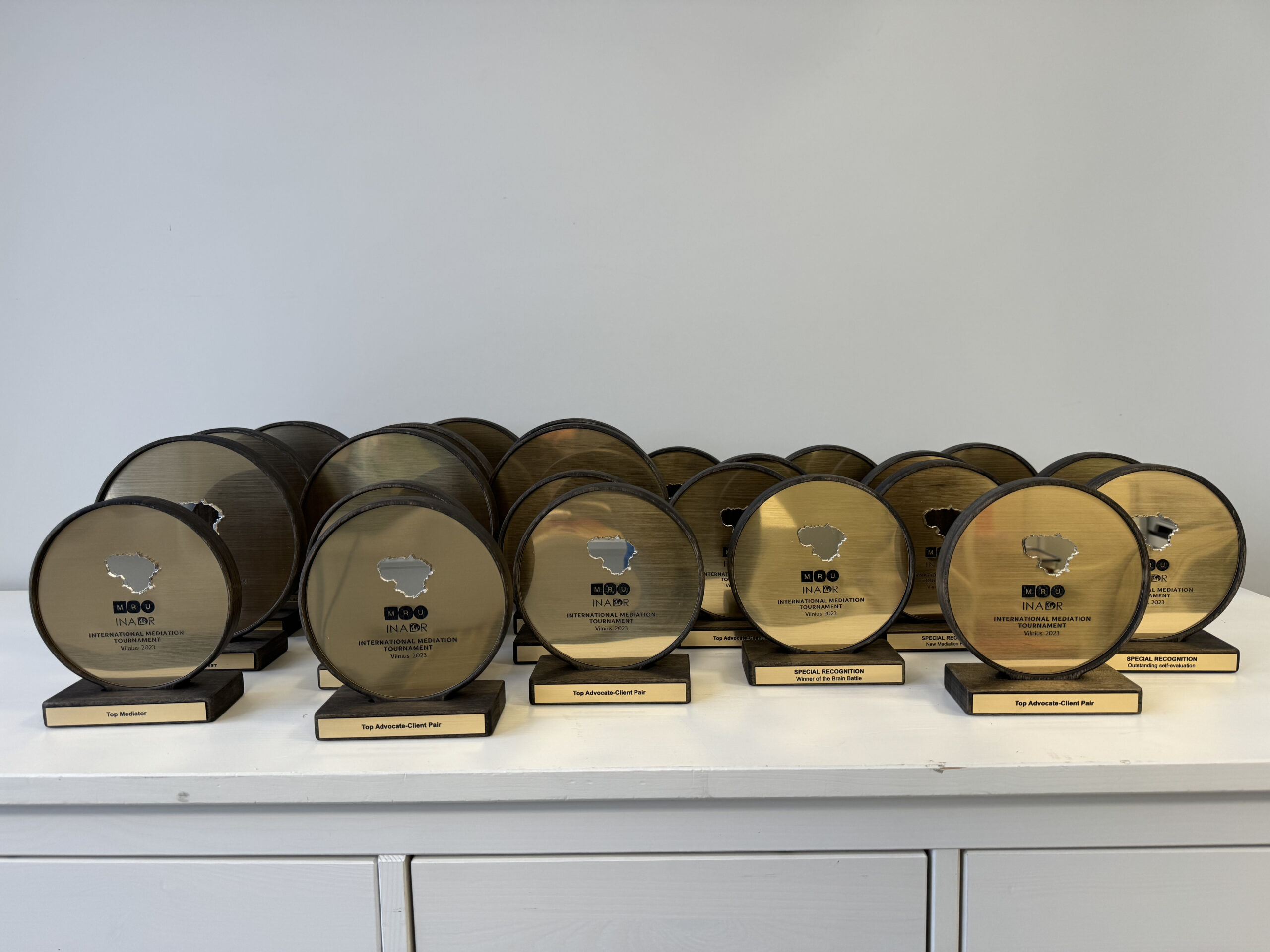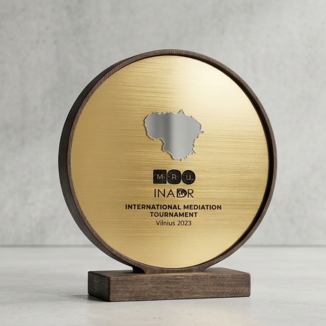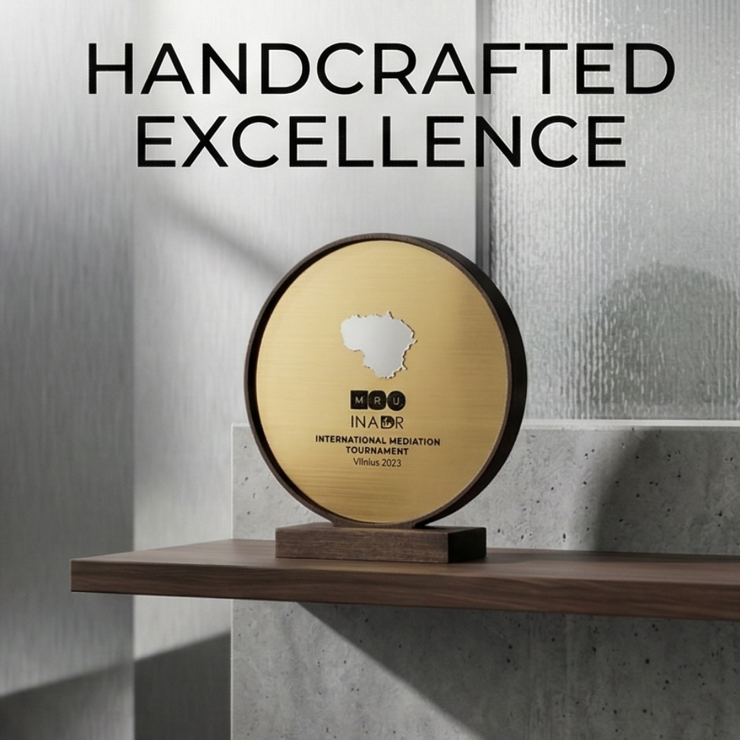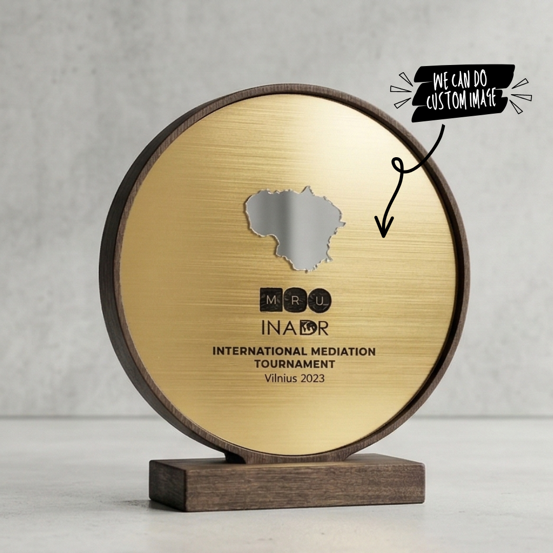 Šis apdovanojimas pasižymi dviguba graviravimo sistema, leidžiančia tekstą ar simbolius talpinti tiek pagrindiniame metaliniame skydelyje, tiek ant pagrindo esančioje plokštelėje. Tai tvarus ir perdirbamas gaminys, idealiai tinkantis tarptautiniams turnyrams, verslo konferencijoms ar aukščiausio lygio vadovų įvertinimui. Solidus dizainas ir preciziška apdaila garantuoja, kad šis prizas taps vertinamu simboliu bet kurioje apdovanojimų ceremonijoje.