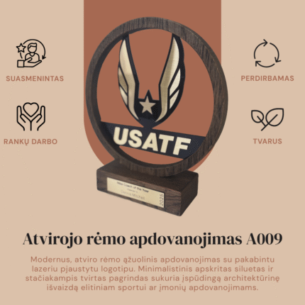Atvirojo rėmo apdovanojimas A009 iš tamsinto ąžuolo su lazeriniu logotipu